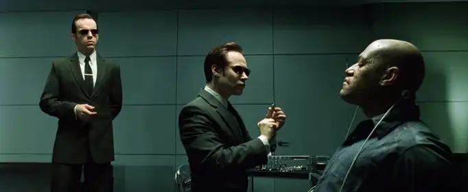 Морфеус объясняет, что Агентов — программы, запущенные внутри Матрицы, чей вид человекоподобный — почти невозможно победить обычными средствами. Они способны мгновенно менять одежду, появляться на месте событий и управлять телами людей в системе. Среди них особо выделяется Агент Смит, чей цинизм, сверхскорость и способность «переписываться» через тела делает его самой большой угрозой. Динамика между Морфеусом, Тринити и Нео формирует эмоциональный центр фильма. Тринити становится для Нео не просто союзницей, её признание и любовь — важный фактор в его трансформации.
