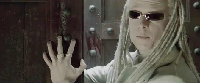 Фильм также углубляет тему симуляции и контроля через образ Агентов, особенно Агент Смита, который в «Перезагрузке» трансформируется в нечто иное: вирус, способный бесконтрольно реплицироваться и заражать как виртуальную, так и реальную части системы. Смит выступает антитезой архитектурной упорядоченности — если Архитектор воплощает структурный принцип контроля, то Смит — принцип распада, неконтролируемого распространения. Его рост показывает, что каждая система рождает не только адаптивные механизмы, но и риски коллапса, если внутренняя устойчивость нарушается. Посыл здесь двоякий: любой контроль можно перегрузить и повернуть против него самого, но последствия такого распада непредсказуемы и часто катастрофичны.