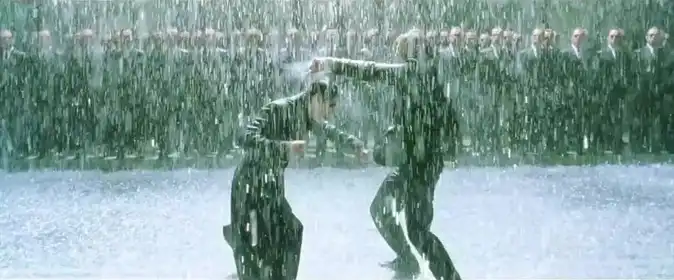Кульминация конфликта внутри Матрицы разворачивается в эпической схватке между Нео и Смитом. Смит, утративший контроль и ставший множителем самого себя, заполонил виртуальный мир бесчисленными копиями. Запас сил Смита — в его способности поглощать и копировать, превращая любых, кого он касается, в собственные рефлексии. Его рост — это сигнал гибели системы, где порядок рушится под натиском хаоса. Нео, обладая уникальными способностями, выходит на последнюю дуэль, но она уже не ограничивается мастерством боя: это бой идей, природа свободы против безудержного воспроизводства. Смита уже невозможно просто уничтожить обычным способом — он должен быть нейтрализован на уровне системы.