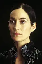 Тринити (Carrie-Anne Moss) в «Революции» получает свою собственную драматическую дугу, связанную с любовью к Нео и преданностью делу человечества. Кэрри-Энн Мосс исполняет роль, в которой сочетаются боевой дух и уязвимость: её Тринити — не только боец, но и человек, эмоционально вовлечённый в судьбу партнёра. Сцена гибели Тринити стала одним из самых трагичных и обсуждаемых моментов фильма, потому что она не просто утрата для Нео, а символ того, насколько цена мира может быть безвозвратной. Актриса демонстрирует широкий диапазон: от хладнокровных боевых сцен до искренних, почти интимных моментов, когда раскрывается глубина отношений героев. Внешний образ и пластика Мосс оставались важной частью визуальной идентичности персонажа на протяжении всей трилогии.