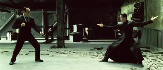 Диалоги и небольшие фразы также выступают носителями отсылок. Повторяющиеся обращения агента Смита к «Мистеру Андерсону» остаются одним из самых узнаваемых рефренов и выполняют роль символической насмешки машины над человеческой индивидуальностью. Диалоги Архитектора и Диалог между Нео и другими программами в финале включают цитаты и идеи из философии: от платоновских метафор до современных вопросов о свободе воли и детерминизме. Архитектурная сцена, где формируются решения и логика мира, и образ «игры шахмат» как метафоры управления и предопределения – все это работает как отсылка к древним и современным дискурсами о власти, выборе и ответственности.
